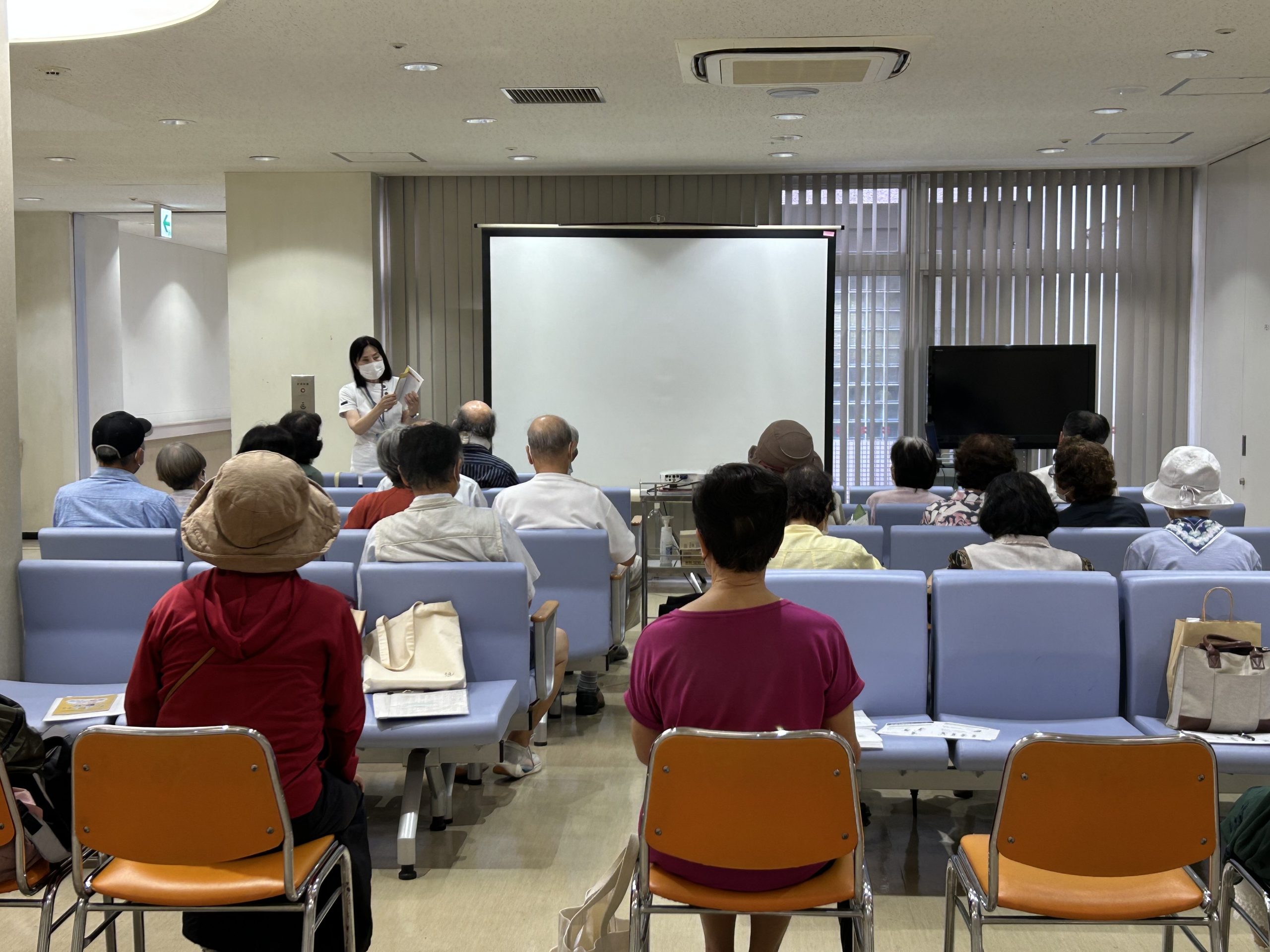 管理栄養士が、わたしの健康栄養手帳、今後の健康セミナー予定の説明を行いました。 |