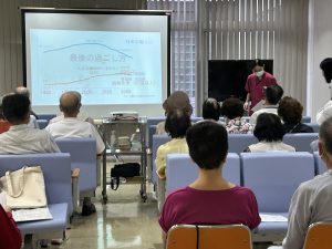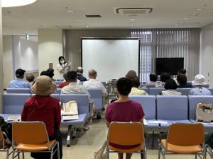 看護師が、①人生会議がうまれた背景、②希望と現実の違い、③大切にしたいこと(人生観や価値観、希望など)、④自分の「最期の生き方」を叶えるためになどについて講演をしました。