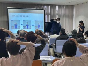作業療法士が、①認知症とは、②認知症の評価、③コグニサイズとは、④脳トレでウォーミングアップ、⑤頭の体操などについて講演をしました。