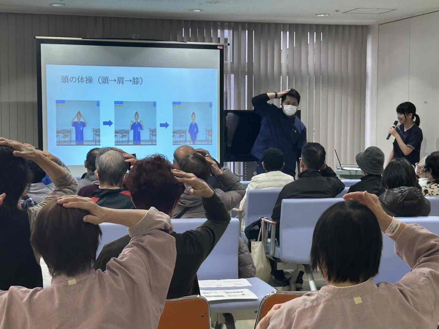 今回は「①認知症患者・高齢者の対応とボケない習慣を知ろう!! ②認知症予防体操 ③自宅でできる膝の運動 ④わたしの健康栄養手帳、今後の健康セミナー予定説明」をテーマに多職種の講演と健康体操などを行いました。