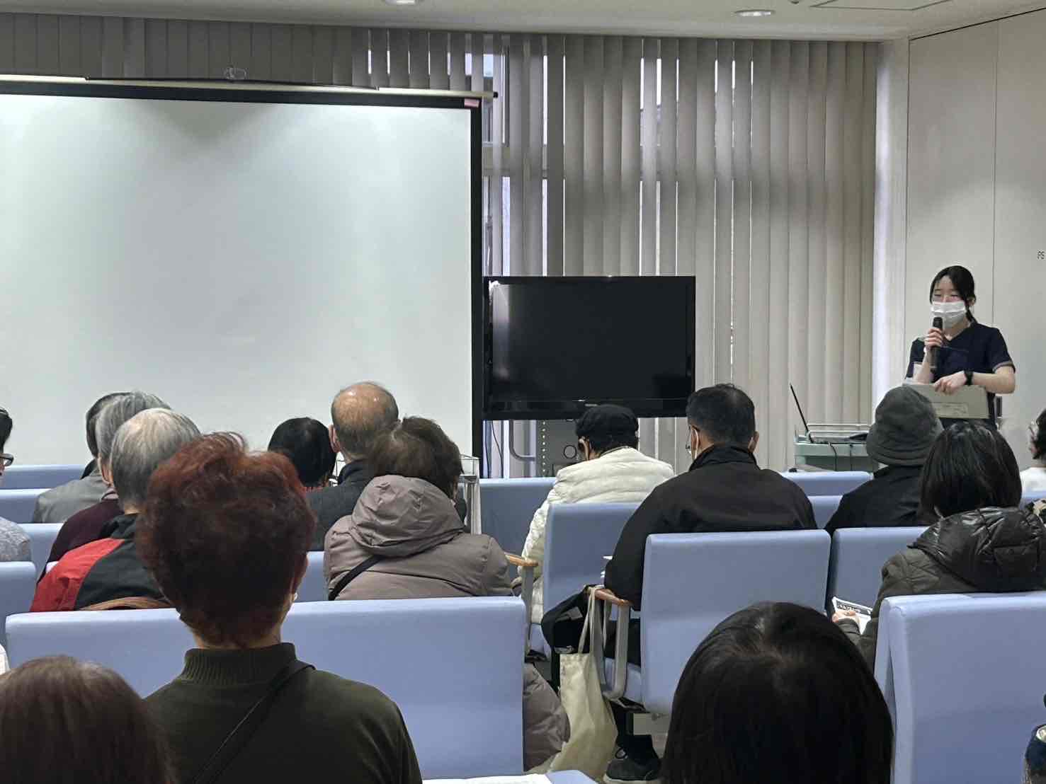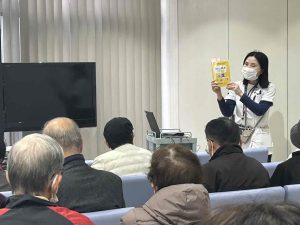 管理栄養士が、わたしの健康栄養手帳、今後の健康セミナー予定の説明を行いました。